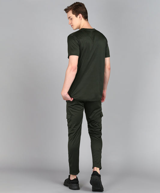 Preen Men's Mehndi Colour Solid T-shirt and Lower Set