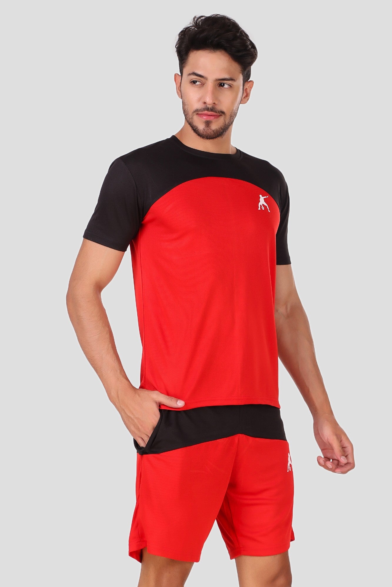 Preen Colorblock T-shirt and Shorts Set BlackRed