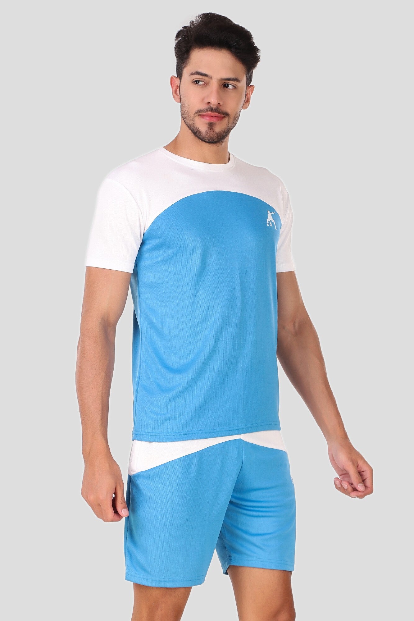 Preen Colorblock T-shirt and Shorts Set WhiteSkyBlue
