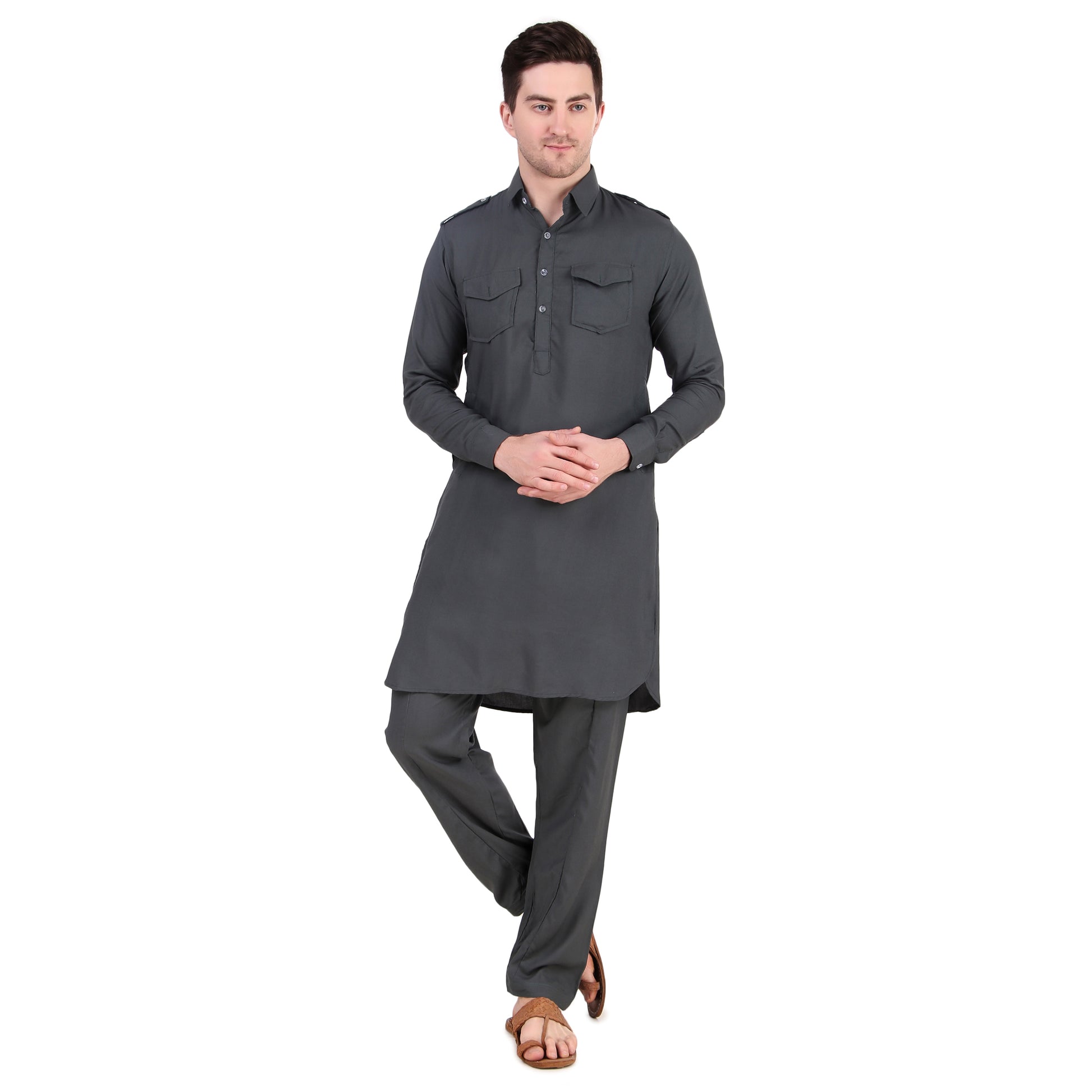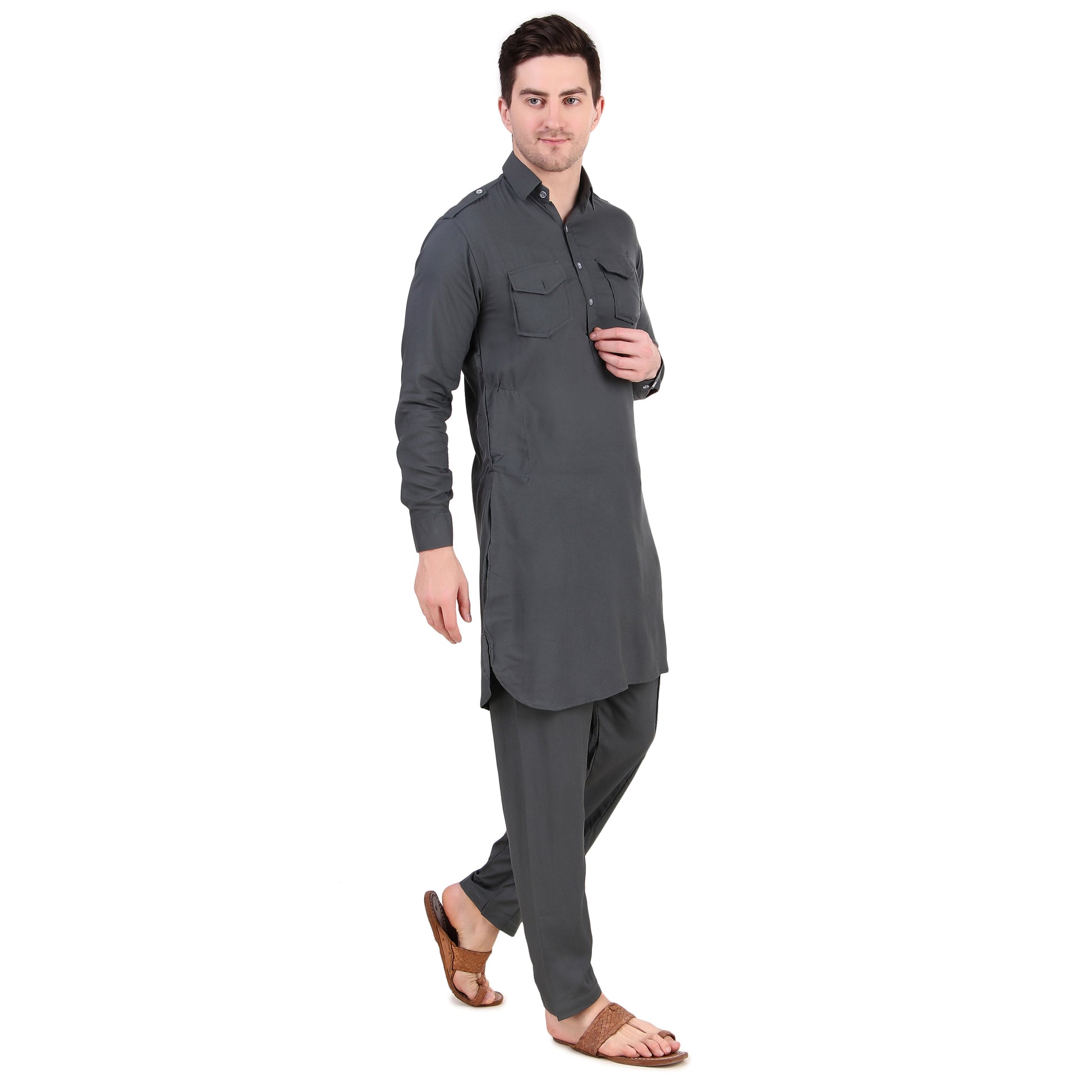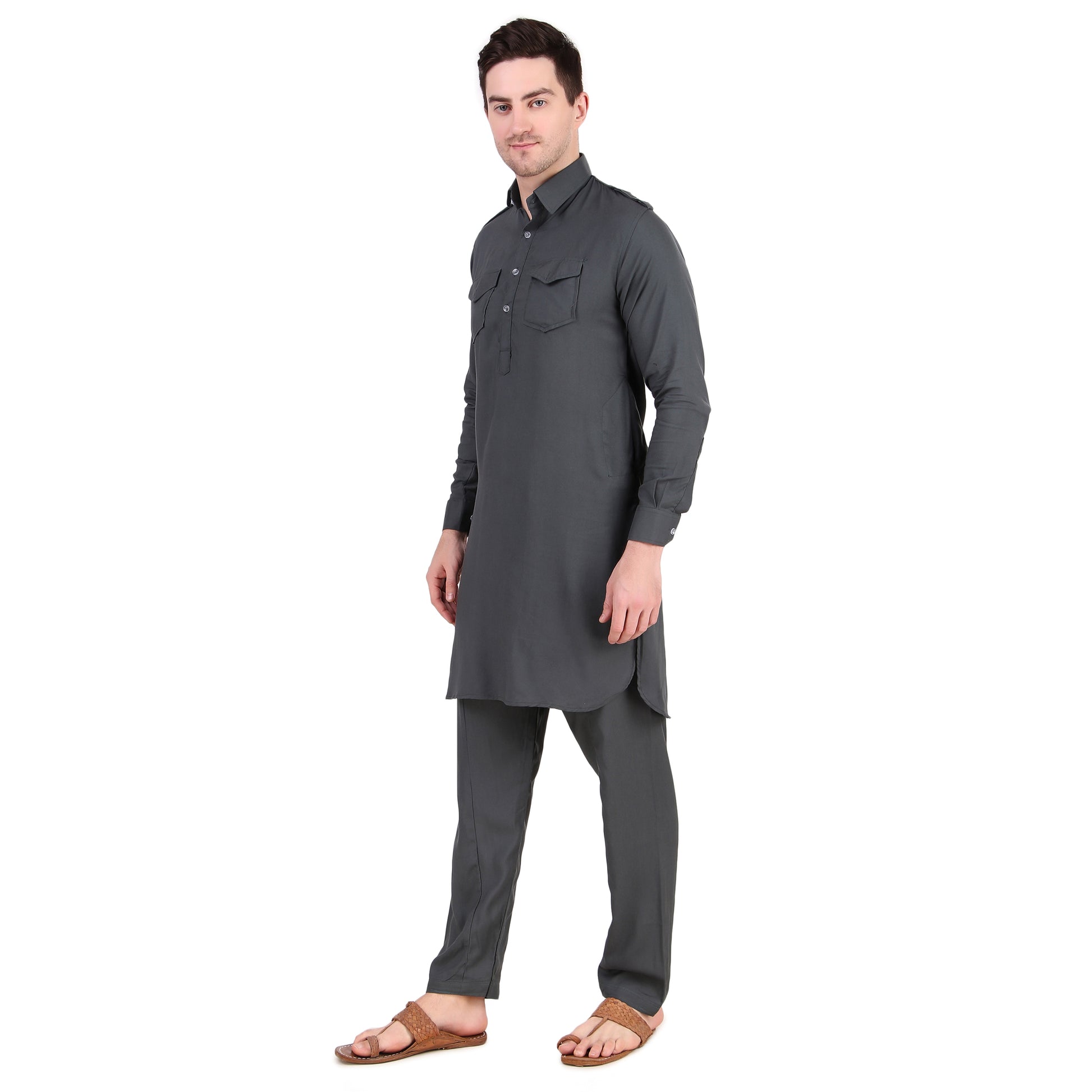 Preen Grey DP Pathani Suit Set / Kurta Pajama Set