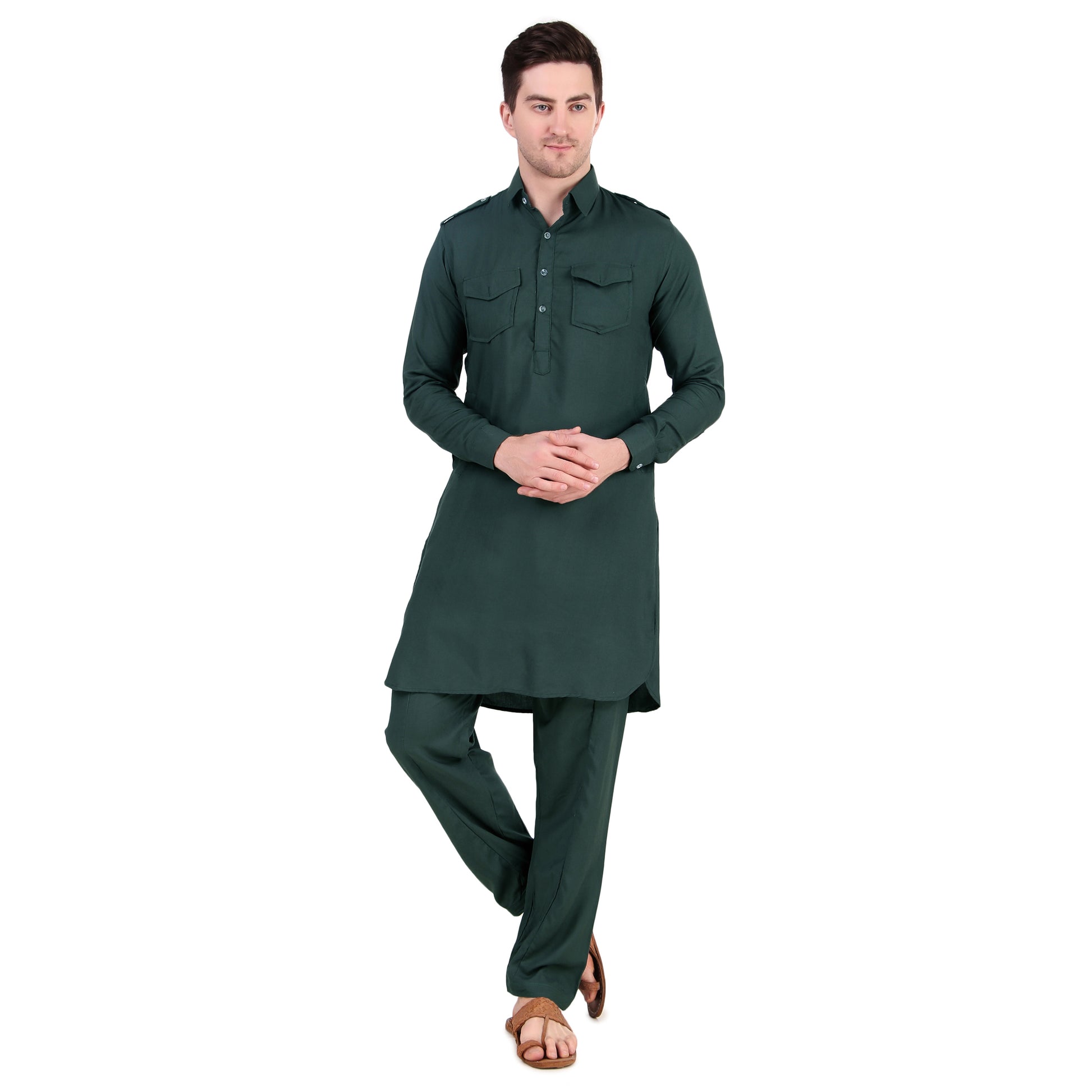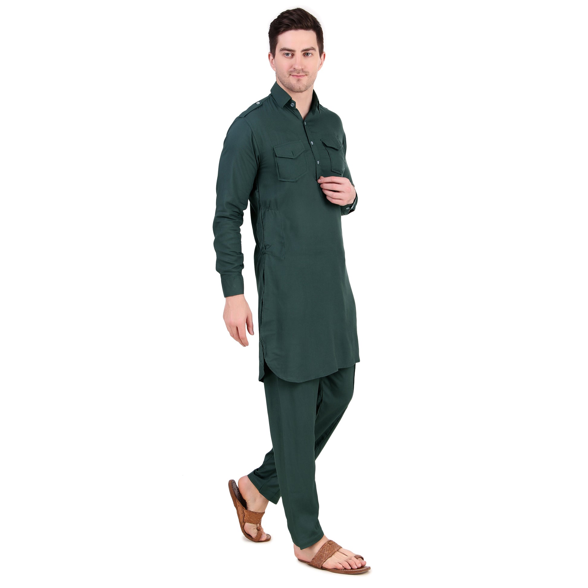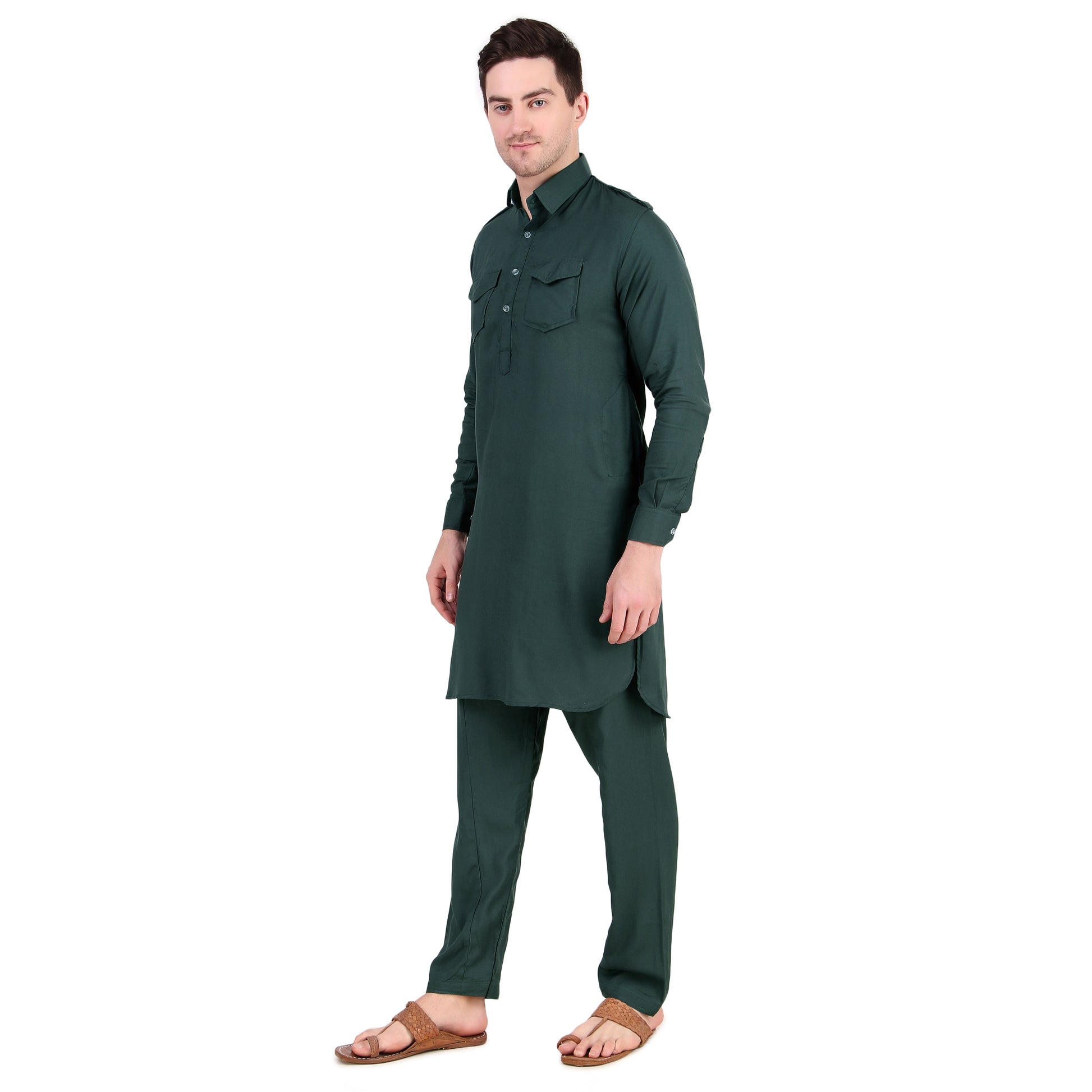 Preen Olive DP Pathani Suit Set / Kurta Pajama Set