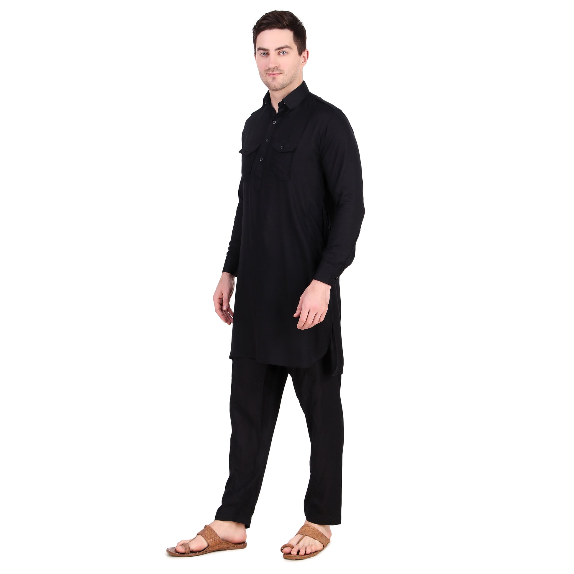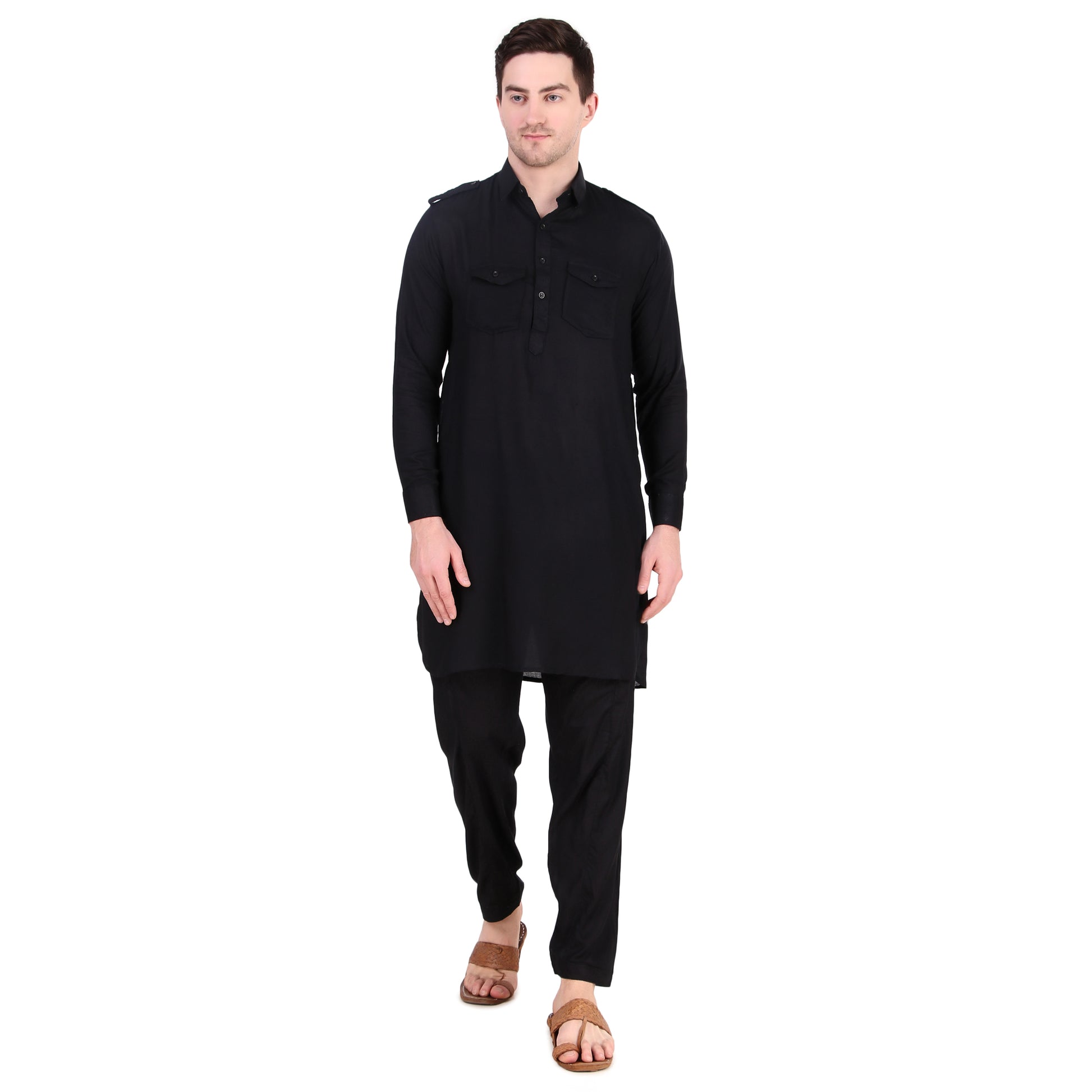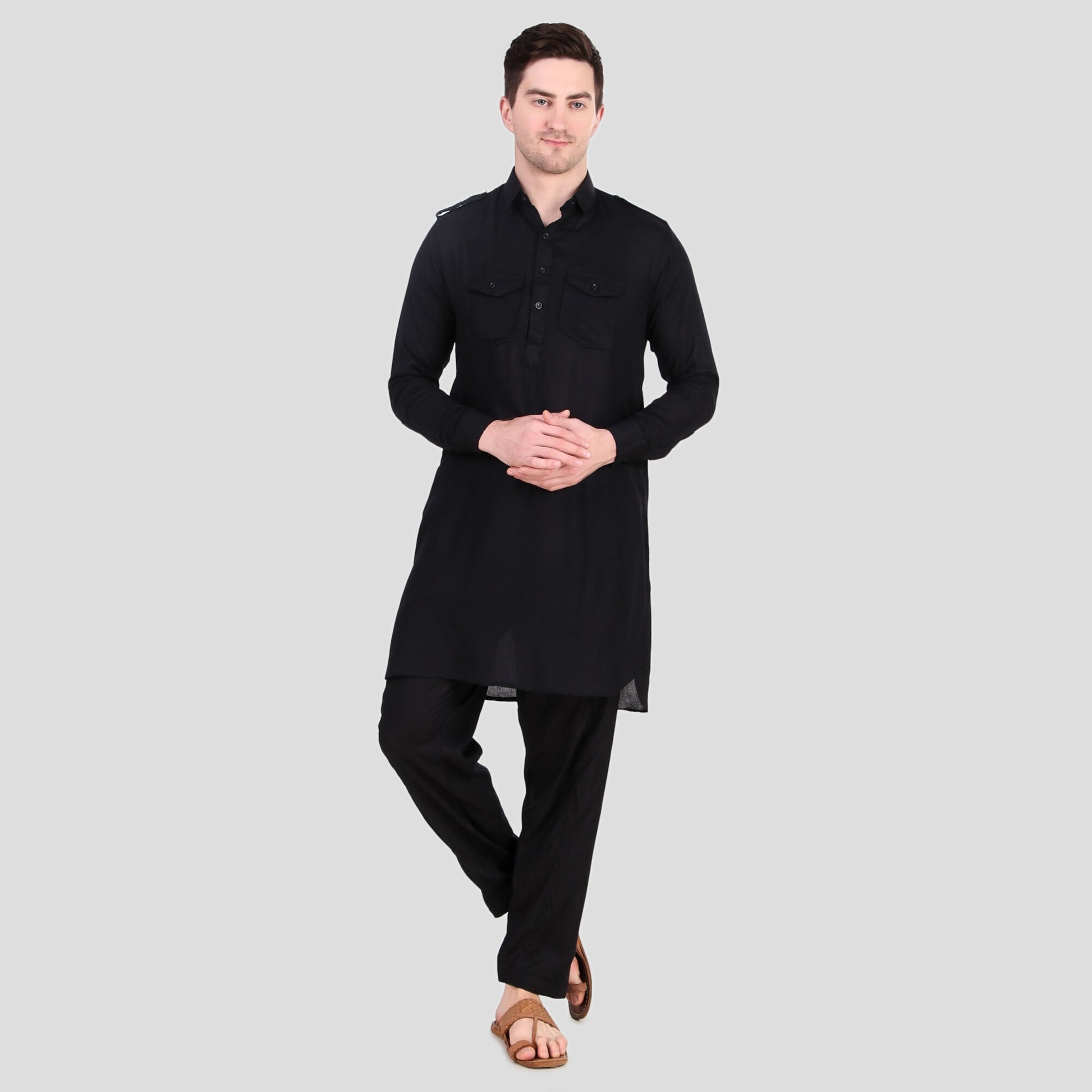 Preen Black DP Pathani Suit Set / Kurta Pajama Set