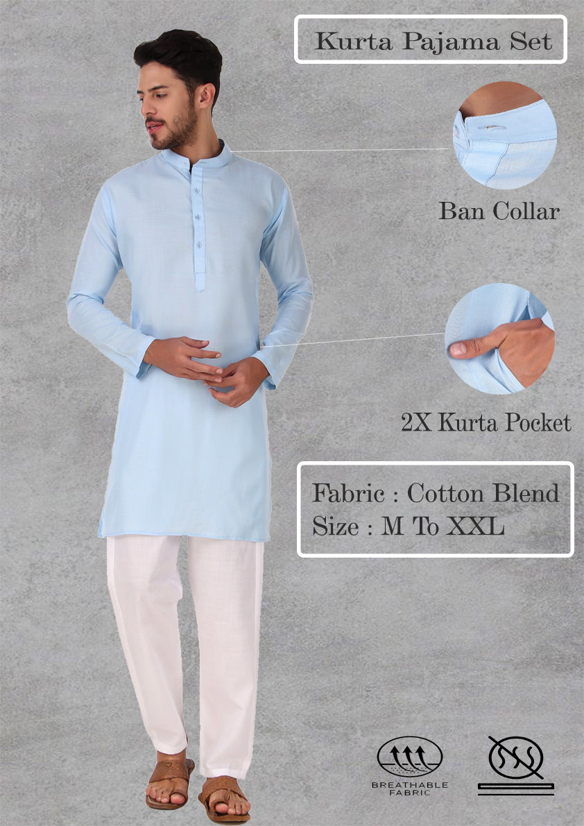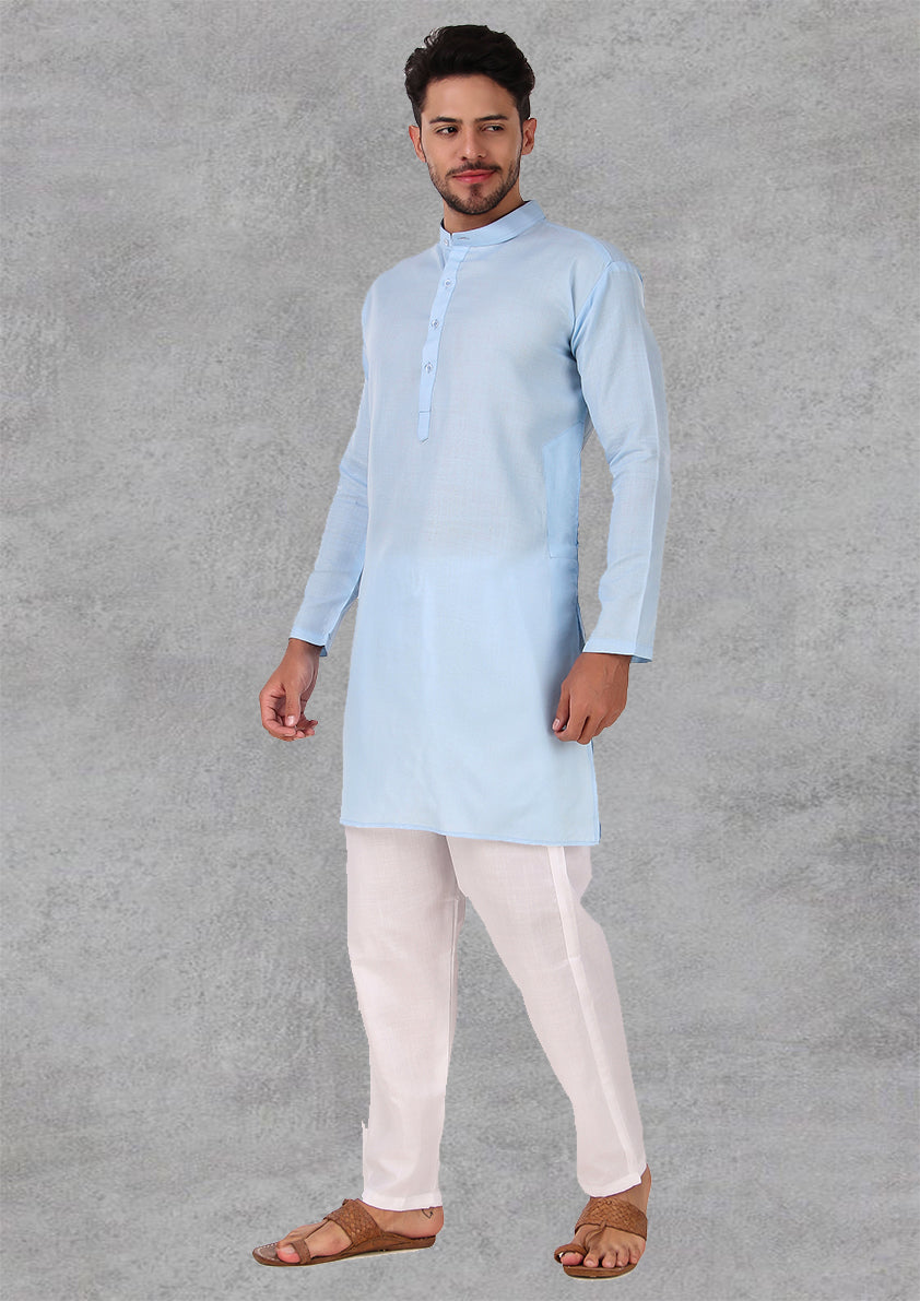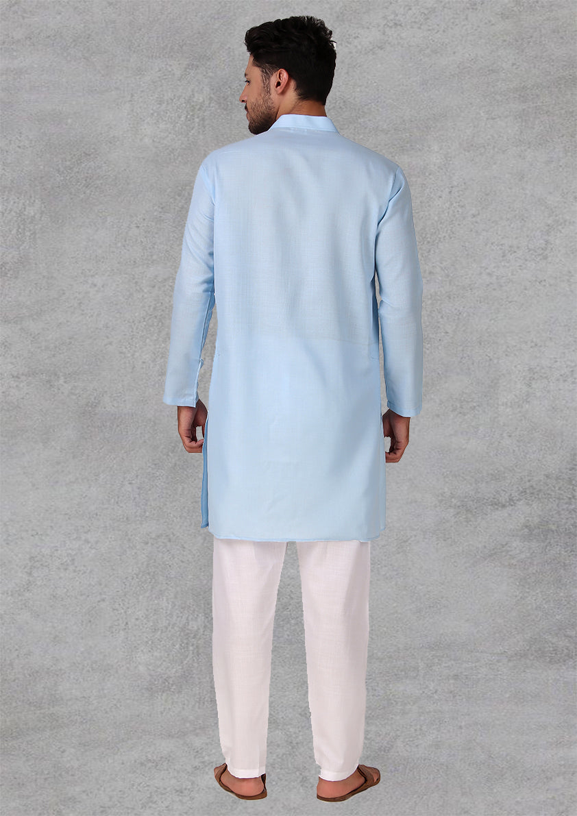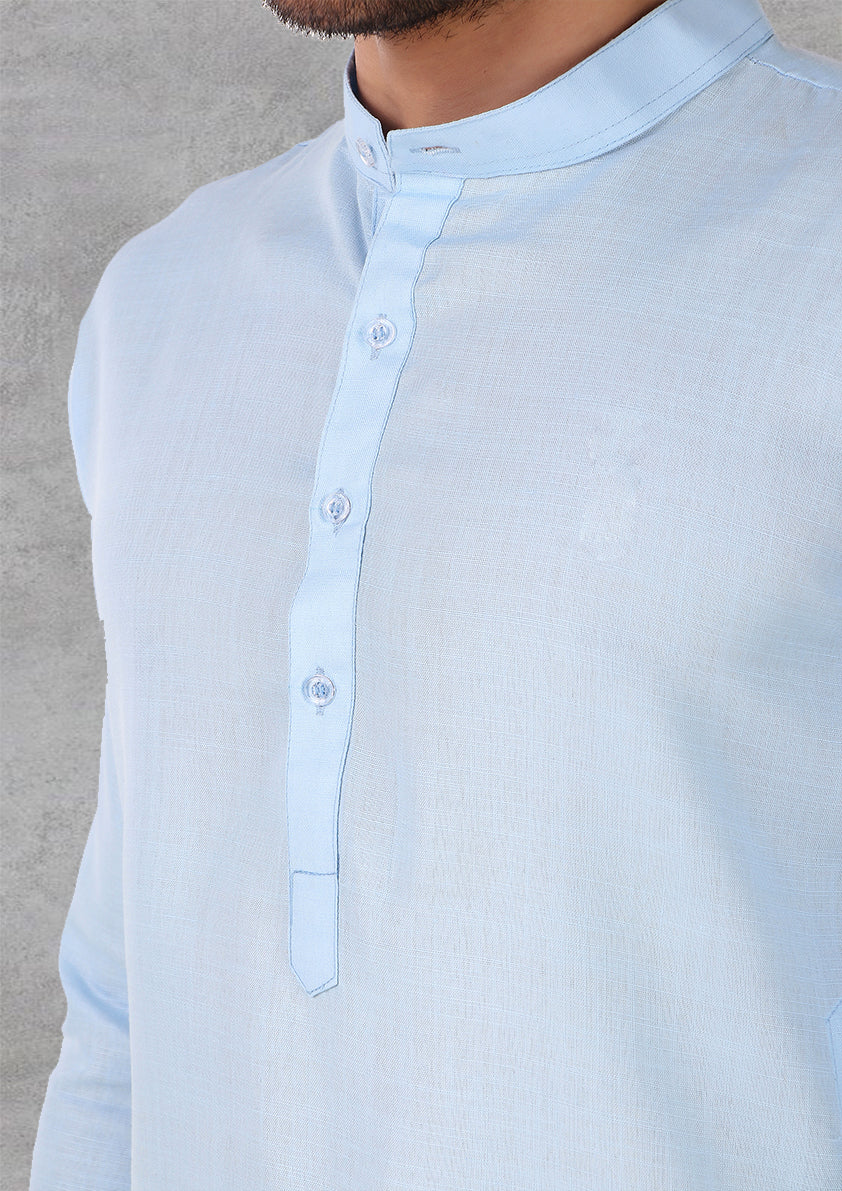 Preen Sky Blue Ban Collar Kurta Pajama Set